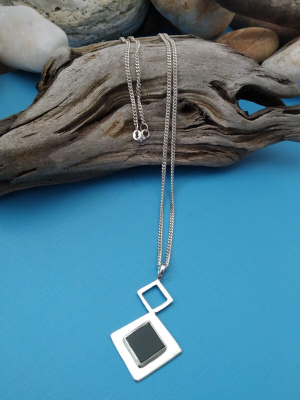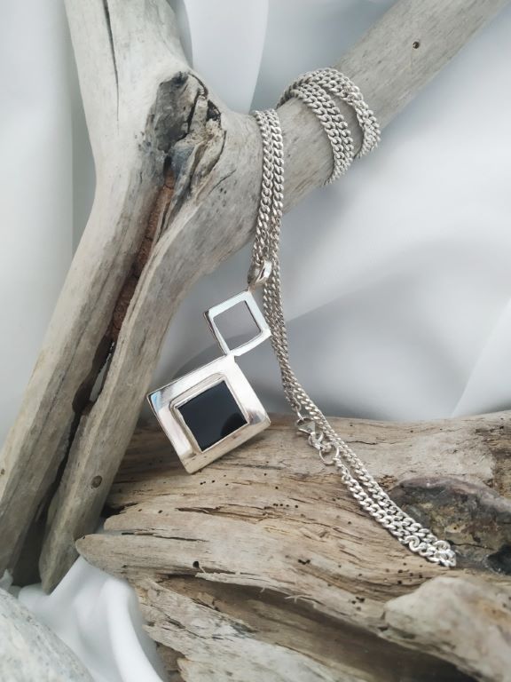 Ασημένιο παντατίφ με αλυσίδα και μαύρο τετράγωνο αχάτη.