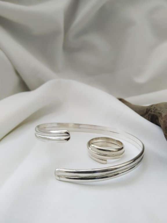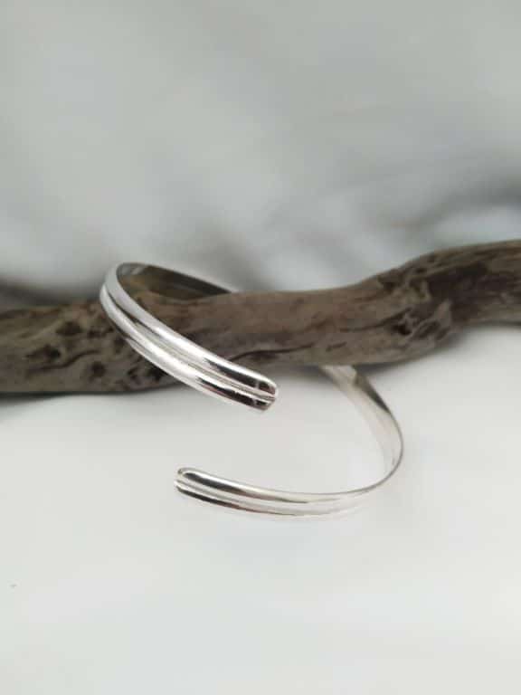 Ασημένια χειροπέδα με απλό σχέδιο . Πολύ εντυπωσιακή