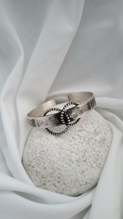 Ένα unisex χειροποίητο ασημένιο cuff με οξείδωση και διακριτικούς κύκλους σε σχέδιο μπίλιας. Το minimal design του συνδυάζει δυναμισμό και κομψότητα, δημιουργώντας ένα διαχρονικό κόσμημα που αγκαλιάζει τον καρπό με χαρακτήρα.