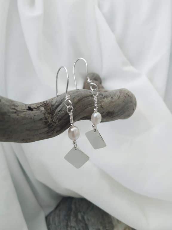 Χειροποίητα ασημένια σκουλαρίκια με μαργαριτάρια.