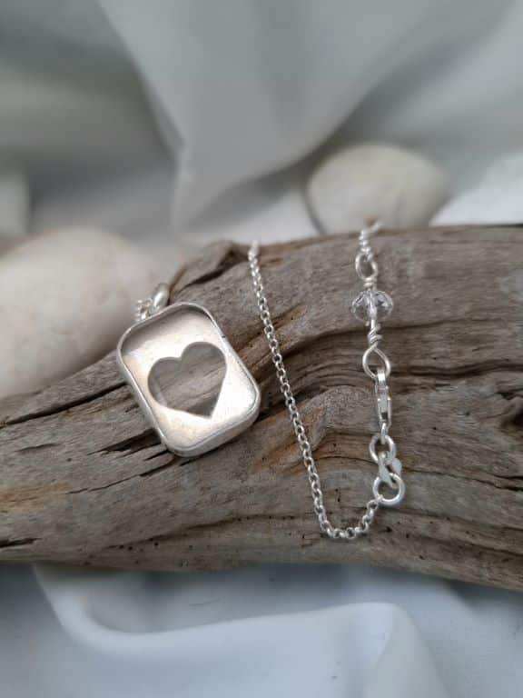 Quartz heart- Χειροποίητο Ασημένιο Pendant Καρδιά με Quartz - Aurelia Handmade - Χειροποίητα Κοσμήματα