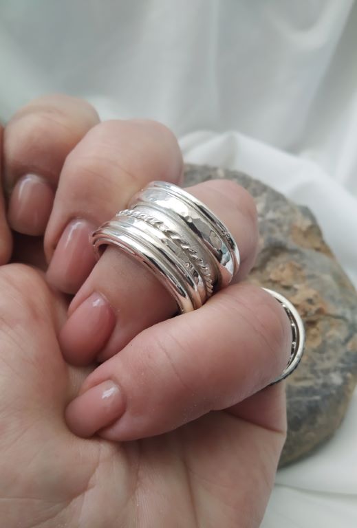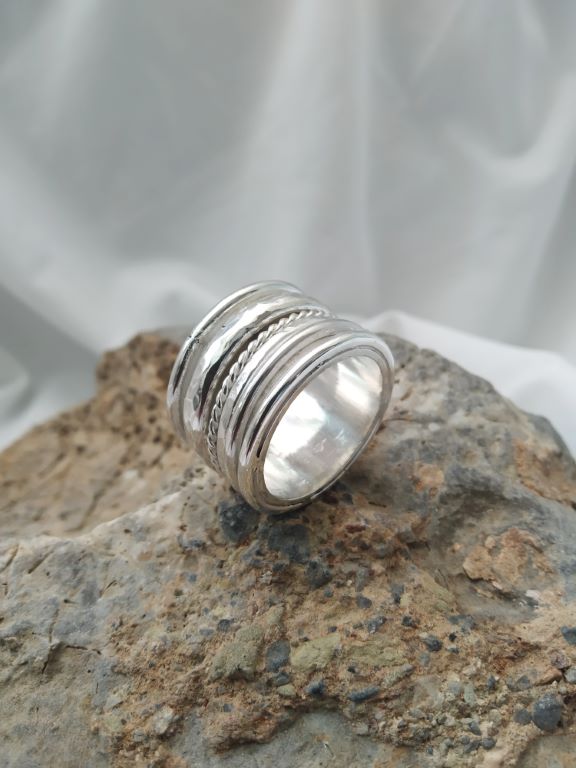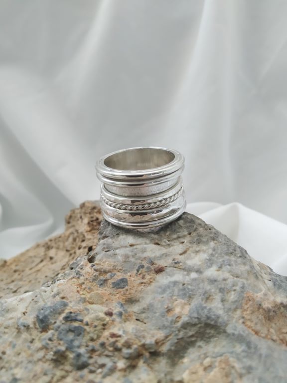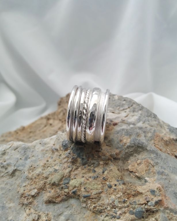 Χειροποίητο ασημένιο δαχτυλίδι με 4  βέρες που έχουν κίνηση λουστραρισμένο  και εσωτερικά τεχνική αμμοβολής!