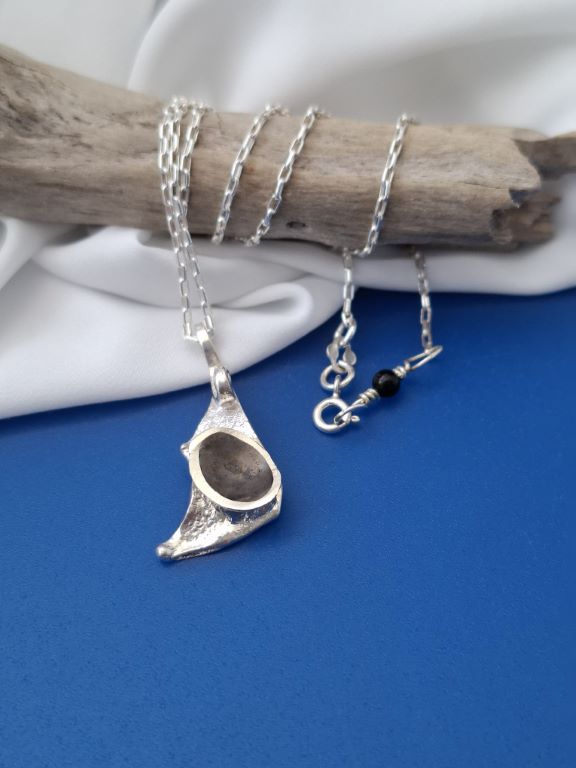 Χειροποίητο κολιέ από ρυτιδωμένο ασήμι με λεπτομέρεια από οξείδωση.