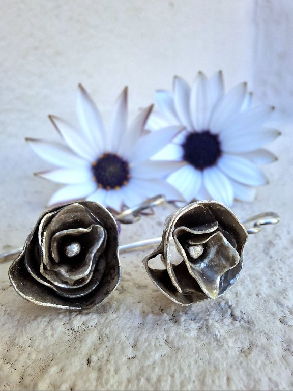 Vintage roses -χειροποίητα ασημένια σκουλαρίκια τριαντάφυλλα - Aurelia Handmade - Χειροποίητα Κοσμήματα